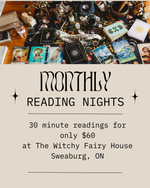 Step into the cozy magic of the Fairy House for an intimate evening of intuitive readings with two experienced spiritual guides. Choose your reader, select your time, and receive a private 30-minute session in a serene and sacred space.