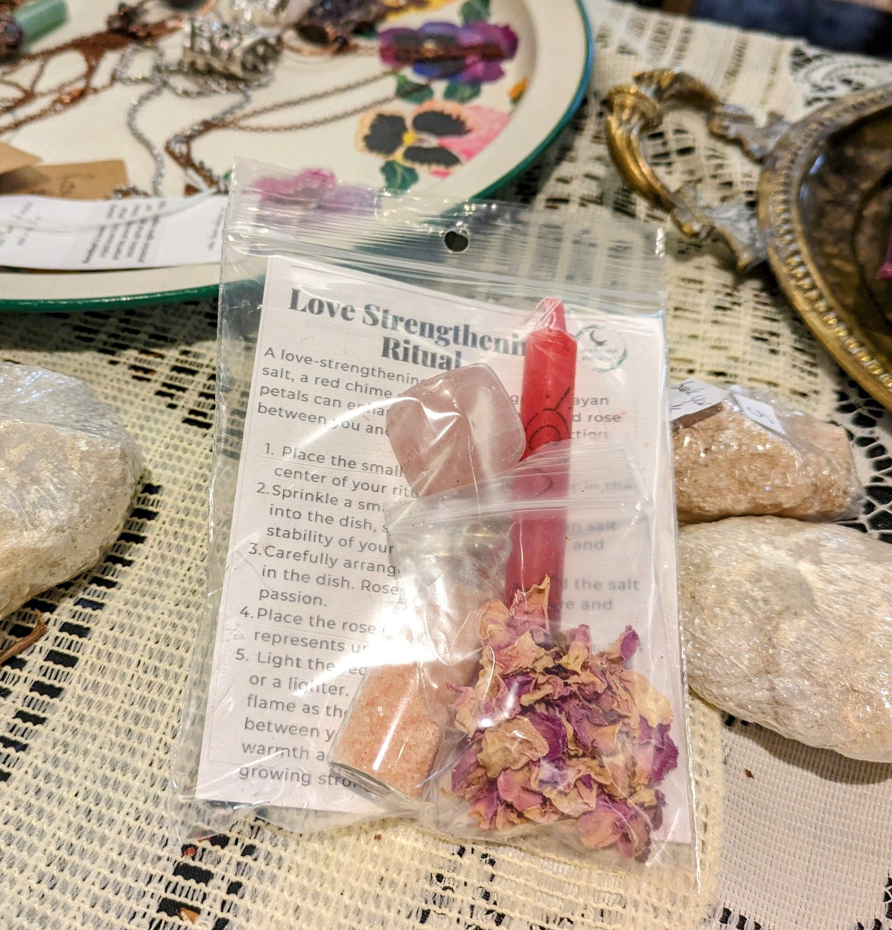 Get started with my easy-to-use ritual kits, perfect for beginners. Each kit includes an instructional card, as well as all necessary items for the ritual. Plus, you'll receive a crystal to keep using even after the ritual is complete.